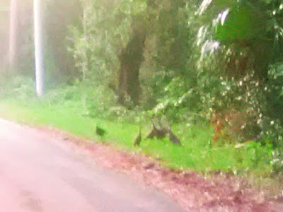 | Wild Turkeys on the road the day before yesterday... |
